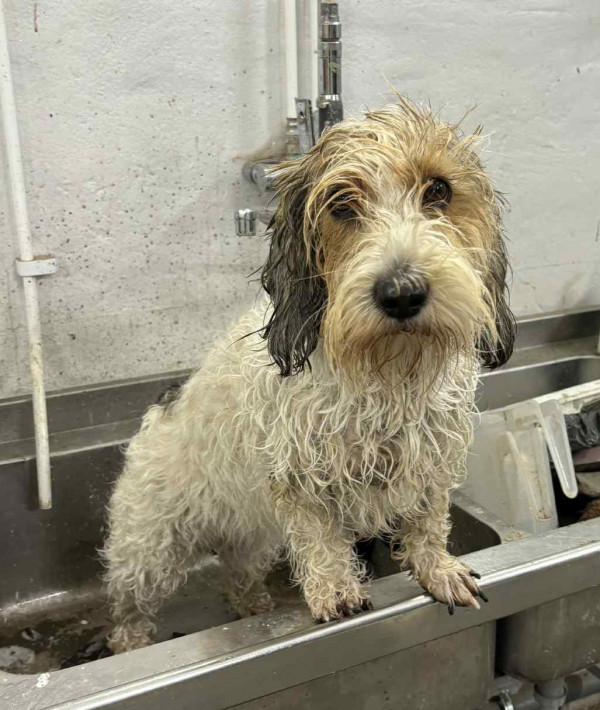 Pippi efter att ha rullat sig i Chanell 5 med doft av vildsvins skit. Blää