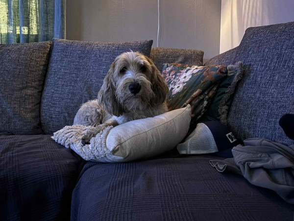 Husse är mkt nöjd med lilla V. Udda Udd som här har varit i närkontakt med rådjur.